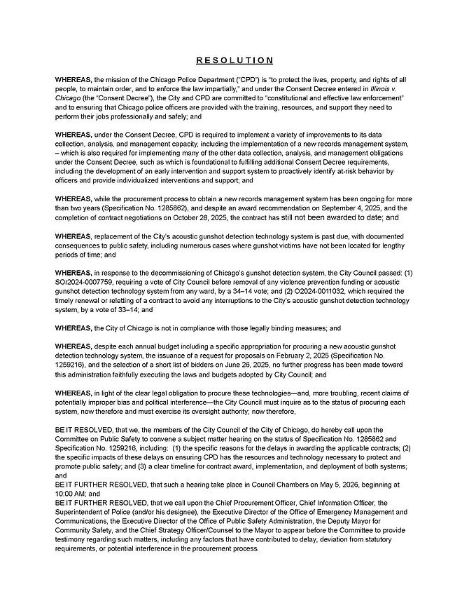 “Public safety tools should not be subject to delays or uncertainty,” said Ald. Peter Chico. “Residents deserve to know that when shots are fired, the City has the systems in place to respond quickly and effectively. Right now, there are too many unanswered questions.”