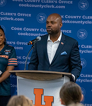 (From left) High School District 214 Superintendent Dr. Scott Rowe, Cook County Clerk Monica Gordon, and Ted Crews, Special Advisor to the President and CEO …
