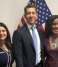 Cook County Commissioners Alma Anaya and Donna Miller with Illinois Secretary of State Alexi Giannoulias. Photo provided by Cook County Commissioner Donna Miller’s Office.
