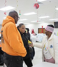 Roseland Ceasefire CEO, Bob Johnson (L) talks with two mothers whose adult sons were killed by gun violence, Kim Blackmon (C) and Paula Ward (R). …