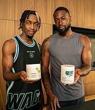 Dwyane Wade and Zaire Wade with Thorne Daily Greens Plus and Amino Complex. PRNewsfoto/Thorne HealthTech, Inc.