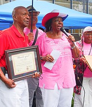 Senator Mattie Hunter recognized former Secretary of State Jesse White for his years of service to the state. Photo provided by Sen. Hunter press office