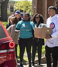 Cubs’ Adbert Alzolay Helps Distribute Food at Advocate Health Care’s Food Farmacy Day. Photo credit: Advocate