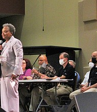 Mayor Lori Lightfoot attended a Town Hall Meeting hosted by 7th Ward Alderman Greg Mitchell. Photo by Tia Carol Jones.
