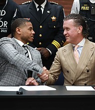 Village of Robbins Mayor Darren Bryant signs contract for the Robbins Police Department on Thursday, May 12. PHOTO PROVIDED BY SEAN HOWARD.