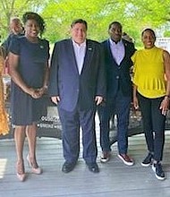 Lynwood Mayor Jada Curry is joined by Governor Pritzker and other State officials during a recent canvass in the Lynwood community. Photo provided by STH …