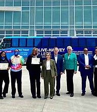 (center-right) Pace Executive Director Melinda Metzger, Chairman Rick Kwasneski, Cook County Board President Toni Preckwinkle, Cook County Commissioner Stanley Moore, Olive-Harvey President Kimberly Hollingsworth, and …