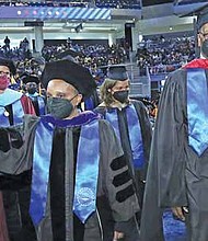 Photo caption: Mayor Lightfoot and City Colleges of Chicago Board Trustee Darrell Williams join City Colleges of Chicago graduation procession for the first in-person graduation …