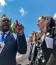 Reps. Emanuel “Chris” Welch of Hillside, who is now House speaker, and Kelly Cassidy of Chicago speak in 2019 at a rally for the Reproductive …