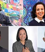 Neighborhood Builders: Racial Equality Award Honorees, Courtes of Bank of America. Top row, left to right, Nathaniel Smith and Manjusha (Manju) P. Kulkarni. Bottom row, …