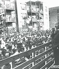 Dr. Martin Luther King Jr. addresses residents in an alley behind an apartment building on Chicago’s West Side. King came to Chicago in 1966 to …