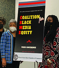 Larry Ivory, Hermene Hartman, Dorothy Leavell, Theresa Haley and Harry Lennix spoke during The Coalition for Black Media Equity press conference. The coalition is calling …