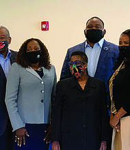 AKA International President and Chief Executive Officer, Dr. Glenda Glover (second from right) is joined by (l-r) former Bennett College President Dr. Phyllis Worthy Dawkins, …
