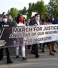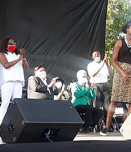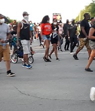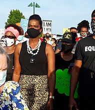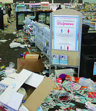 (from left) Rhonda Nunn, Jovun Shaw and Savannah Wallace volunteered to help clean up at Walgreens, 1533 E. 67th St., following last week’s looting spree …