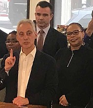 Mayor Rahm Emanuel (pictured) recently spoke at the grand opening of the redesigned Whitney M. Young Jr. Library in Chatham. Photo Credit: Katherine Newman