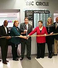 Pictured with Scissors: South Suburban College’s Robin Rihacek, Executive Director of Enrollment & Retention Services and Frank Zuccarelli, Chairman of the Board of Trustees, cut …
