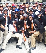 Urban Prep Academy High School students celebrating after "National Signing Day 2018," a day when graduating seniors announce which college they will attend in the …