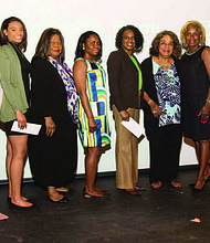 Pictured: Members of the South Suburban Chicago Chapter of the Links presented academic scholarships to Jasmine Carter (3rd from left), Cherise Miskell (5th from left), …