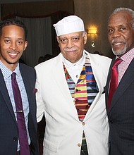 Madhubuti's son Akilil Lee, Dr. Madhubuti, and TWPF50 honorary chair and actor Danny Glover at TWPF50 gala at The Parkway Ballroom.