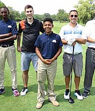 Glenwood Academy students greet golf foursomes during the school’s 130th Anniversary Pro-Am event at Flossmoor Country Club on Aug. 2, 2017. (Photo provided by Glenwood …