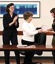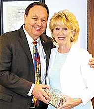 Pictured: SSC Chairman of the Board Frank Zuccarelli with 30-year retiree Jan Green.
