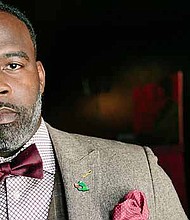 Freedom Ties Co-Founder Tavares Bethel presents a check to Maeva Jackson, founder of Black World Books, who received the majority votes which awards her half …