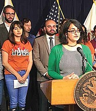 Press conference from left to right – David Reifman, Commissioner of the Department of Planning and Development; Ald. Foulkes; Deputy Mayor Andrea Zopp; Rosalind Moore, …