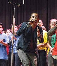Sir the Baptist performing with students at John Spry Community School as part of Toyota Giving and VH1 Save The Music’s grant presentation