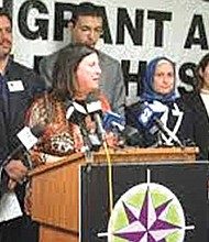 Jane Ramsey, (at podium), a member of Chicago Women Takes Action (CWTA) and Committee Chair for Gun Violence Protection and Police Accountability, speaks at the …