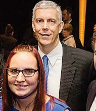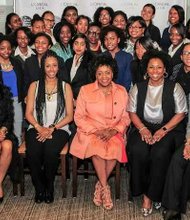 Dr. Jacqueline Samuel (left) is joined by the rest of the National Louis University 2016 Reach Award winners including (from left) Amanda Leftwich, Arne Duncan …
