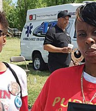Johneece Cobb (left) and Debra Butler are joined by Butler’s daughter to honor the memory of loved ones lost to gun violence. Cobb lost her …