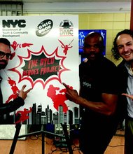 Pictured from left to right: Darryl Makes Comics Partner and Editor-In-Chief Edgardo Miranda- Rodriguez, Hip hop icon Darryl “DMC” McDaniels of Run DMC, who launched …