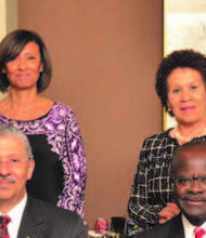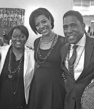 Rita Tolbert, of UnitedHealthcare Medicare & Retirement, 79-year-old bodybuilder Ernestine Shepherd, and Rev. Dr. Otis Moss, of Trinity UCC.