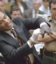 In this June 15, 1995, file photo, murder defendant, O.J. Simpson grimaces as he tries on one of the leather gloves prosecutors say he wore …