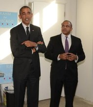 President Barack Obama (left) stopped by Will Burns (right) campaign office in Feb. 2015 to rally for Burns’ re-election as 4th Ward alderman.