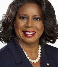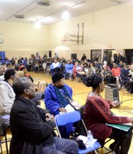 Ald. Michelle Harris speaks to residents of the 8th Ward on current matters affecting the city.