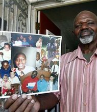 In this Sept. 16, 2015, photo, Kenneth Evans holds a composite of photographs of his son Tuan Evans, as he poses for a photograph at …