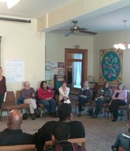 The Beverly Unitarian Church members listen in during a workshop on the history of the criminal justice system.