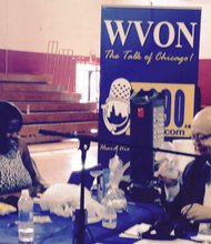 Cliff Kelley of the WVON radio team volunteered at a fund-raiser last week to keep open the doors of Hales Franciscan High School, 4930 S. …