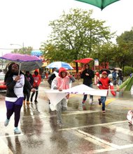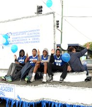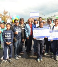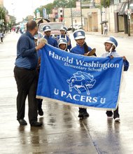 St. Ailbe Catholic School students surround Principal Oleccia Cheers, Ald. Michelle Harris (8th Ward), U.S. Rep. Robyn Kelly (Dist.-2nd) and Water Reclamation Commissioner, Kari Steele …