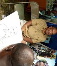Artist Oboku Osei draws Lavaughn Booth.
