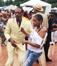 Denise Sherman dances with Ron Wilkens at the DuSable festival.