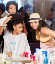 2015 #NoLACrawl Style Suite Presented by Dove Hair co-hosts Kimberly Lachelle of SpeedBeautiful.com, Taren Guy of YouTube.com/Taren916, Jessica Andrews of GlamazonsBlog.com, Christina Brown of LoveBrownSugar.com, …