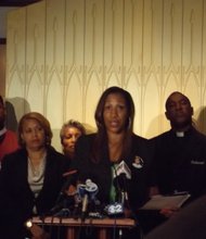 Pamela Montgomery-Bosley, whose son, Terrell, died in gun-violence several years ago, spoke Tuesday at news conference about a lawsuit targeting three suburbs over gun regulations.