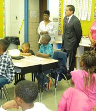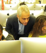 Chicago Mayor Rahm Emanuel visited Fiske Elementary School's, 6020 S. Langley Ave., computer lab for an on-site evaluation of Chicago Public School' Summer Bridge program …