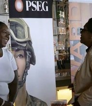 In this photo taken Tuesday, June 30, 2015, Sophia Lewis, left, with PSEG Long Island, speaks to an attendee about employment opportunities during a job …