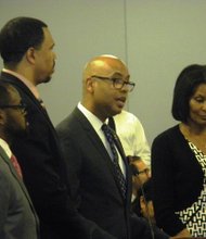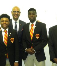 L-R Urban Prep Academy students Ronald Weaver, III; Jesse Olalusi, and Chandler Harrington joined Urban Prep Academy CEO/President/Founder Tim King (center) as he lobbied to …