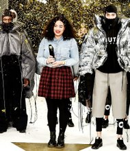 Hannah Wallace of Manchester School of Art, winner of the gold award, with models wearing her designs.