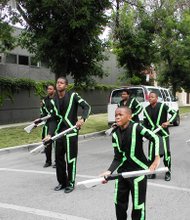 South Shore Drill Team members practice before taking part in the Chicago west side parade.