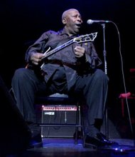 Musician B.B. King performs onstage at the Gibson Amphitheatre on August 6, 2005 in Universal City, California.